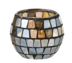 Photophore Verre Mosaïque Doré Et Gris Jibel H 20 Cm – Lot De 4