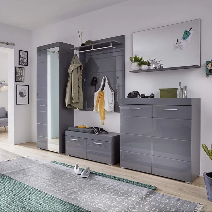Matériau : MDF (panneau de fibres à densité moyenne) gris haute brillance